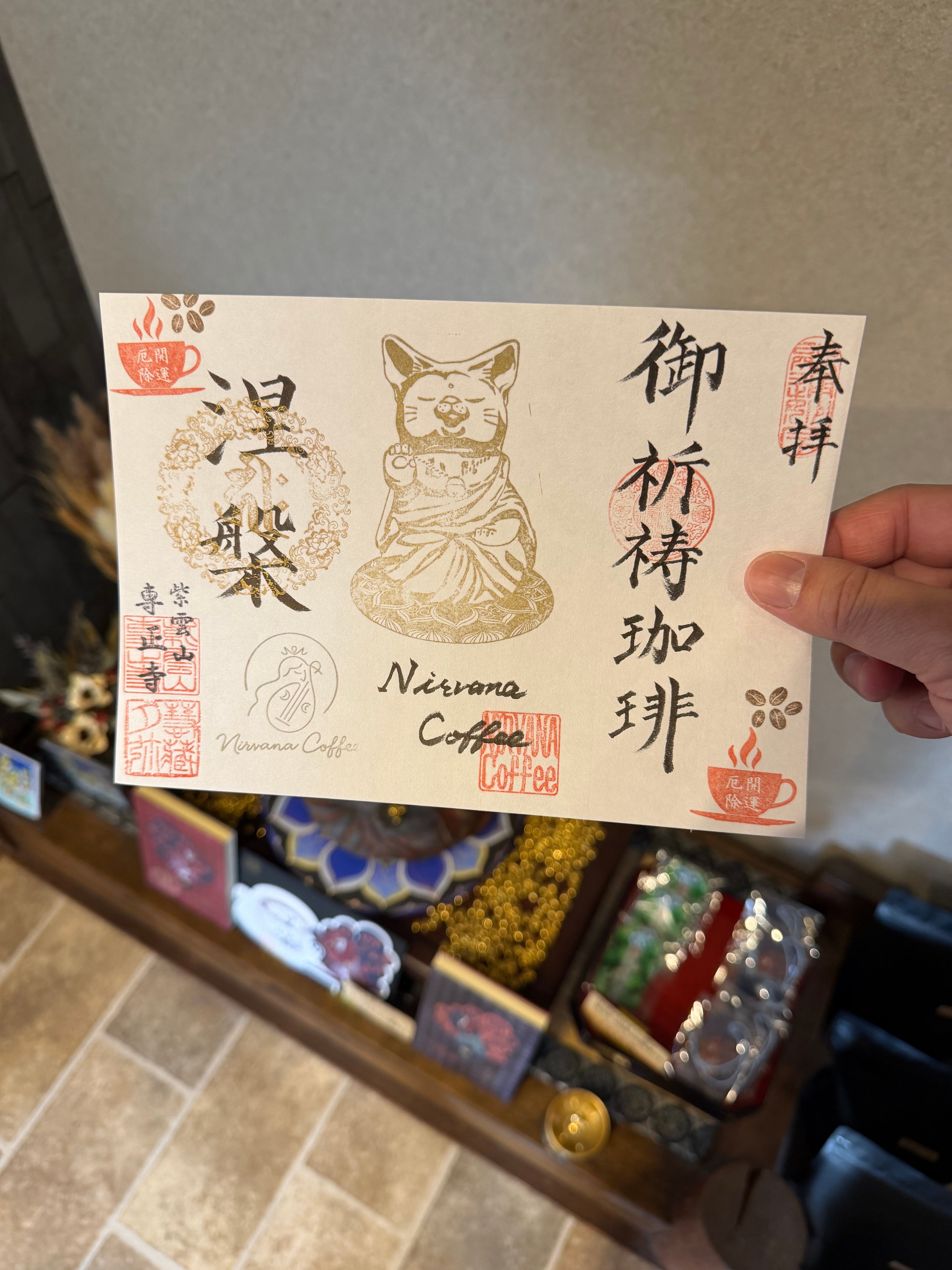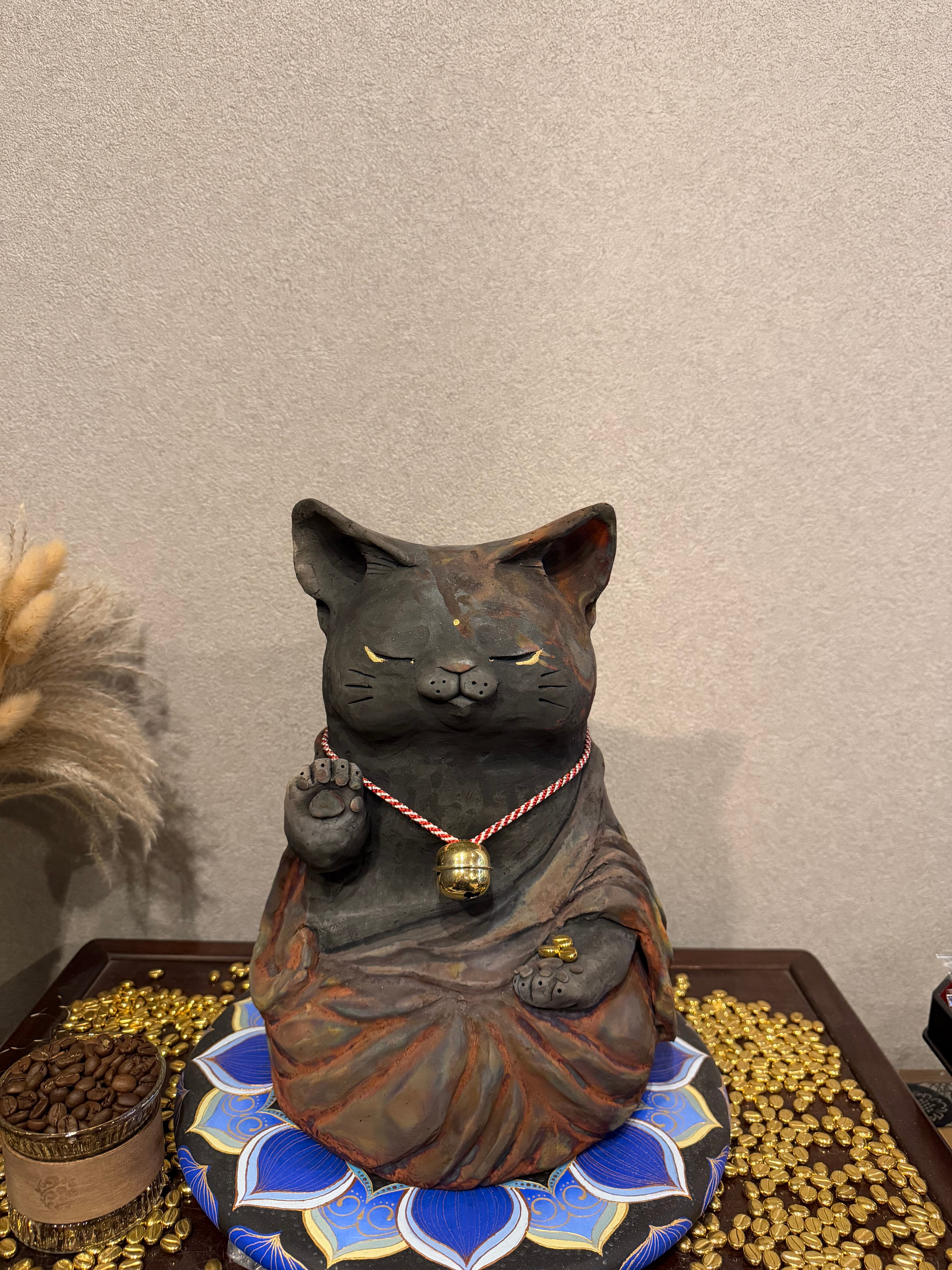 新しい心の扉を開く猫仏さま御朱印! ■猫仏さま御朱印(見開きサイズ) 数量限定です。 当店に祀られています、珈琲豆を守護する存在の猫仏さまの御朱印となります。 猫好きの方や仏教に興味のある方にも心温まる授与となります。